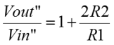 Below is the equation that describes the gain of the non-inverting amplifier. Obviously in this configuration two amplifiers share R1. They actually get half of it each. You'll see that the equation tweaks this slightly, just to make it neater. Essentially it's the non-inverting amplifier equation from previously.